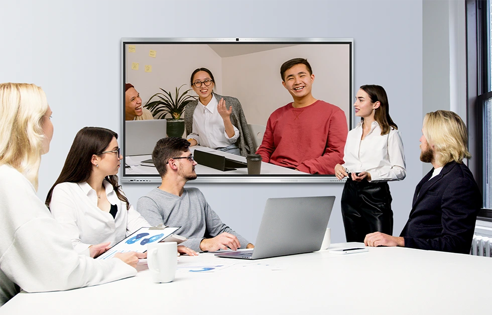 Eleve a colaboração com a tela plana 4K UHD de 116 polegadas, combinando clareza impressionante com multitoque infravermelho de 40 pontos, é construído para durabilidade com vidro temperado AG 7H. Perfeito para salas de aula e salas de reuniões modernas.