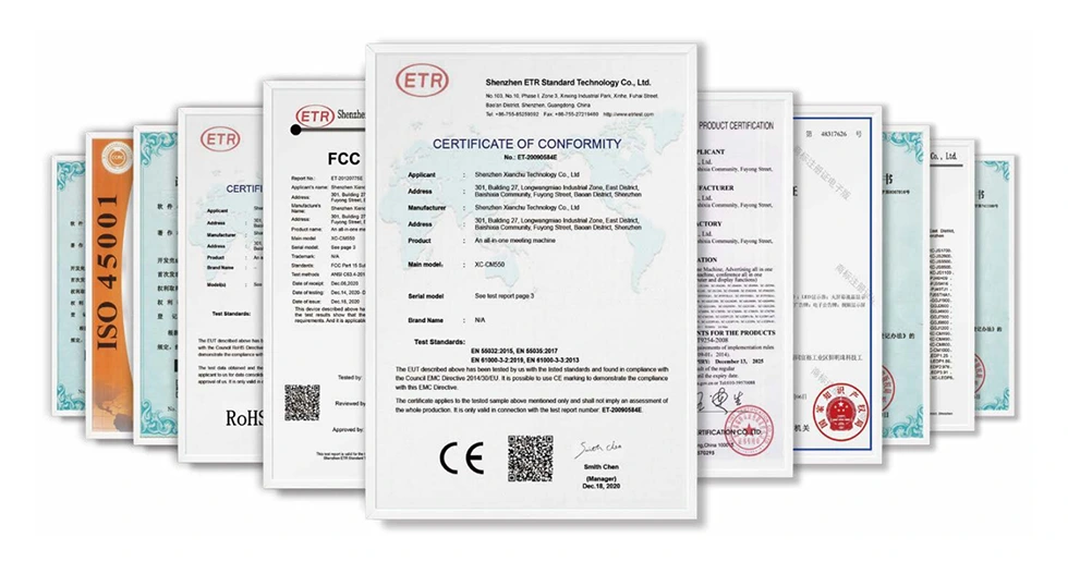 Vários testes profissionais rigorosos foram realizados para garantir que a qualidade do produto seja estável e confiável. Atualmente, a fábrica passou pela certificação do sistema de gestão de qualidade ISO9001, certificação de economia de energia, 3C, CE, ET, FCC, ROHS e etc.