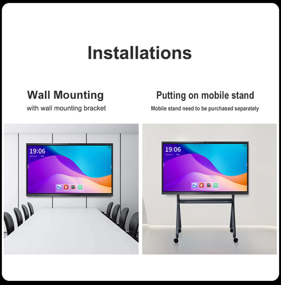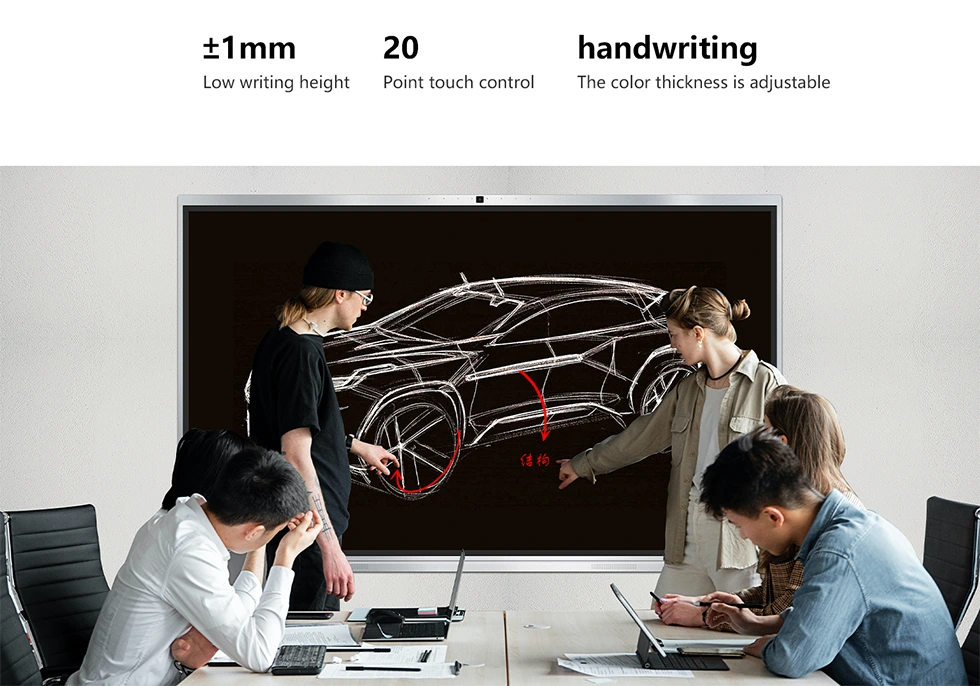 Experimente escrita suave, colaboração sem fio, recursos visuais HD e conveniência de escritório inteligente tudo-em-um com o display interativo de toque infravermelho RK3588.